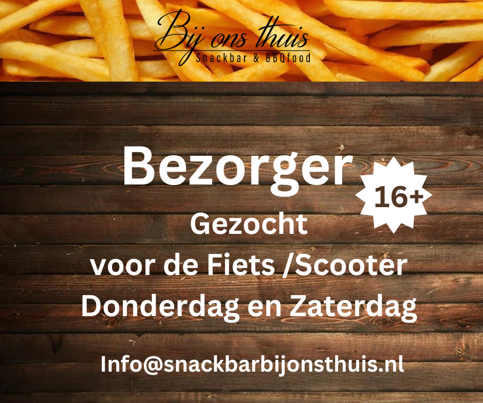 Woensdag | 15:00 - 21:00Bezorging van 16:00 tot 21:00 |