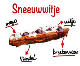 de enige echte willie , mayonaise, saté saus , en uitgebakken uitjes